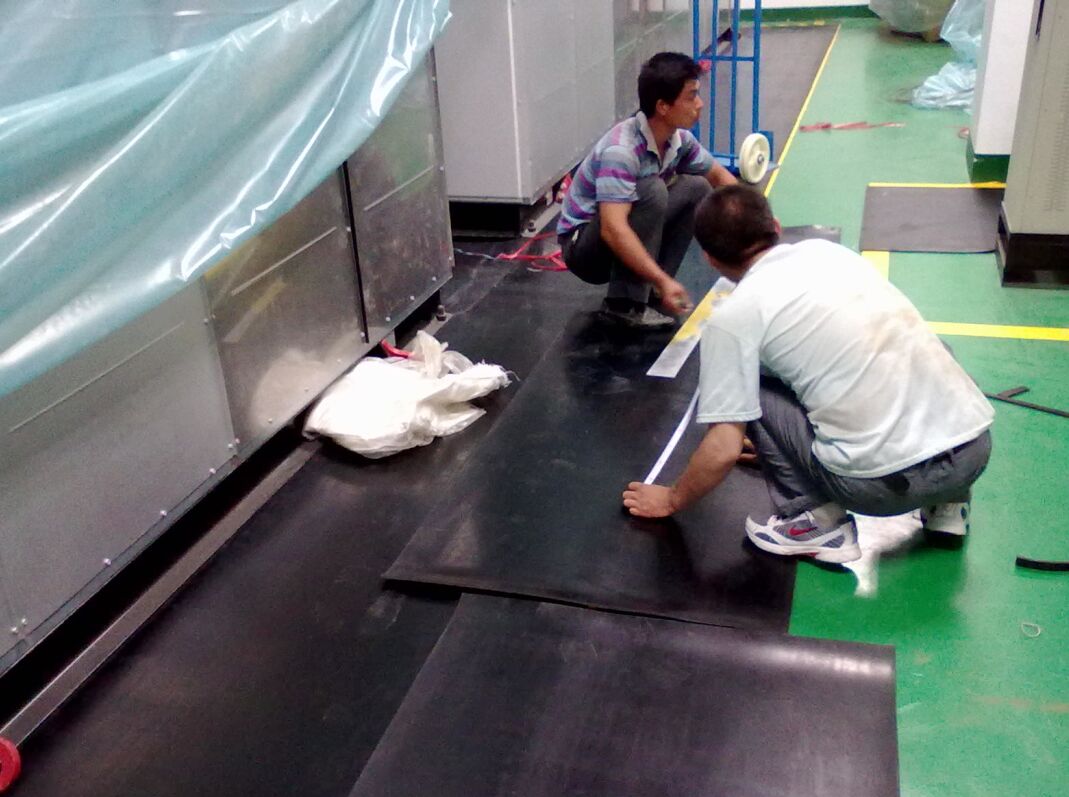 絕緣膠墊本身有一定重量,有較好的抓地性,可以直接平鋪在地面上,一般無需膠水固定;接縫處可用壁紙刀切成斜度45°的切口,對齊拼接后可保證無明顯縫隙,不影響美觀及絕緣膠墊正常使用,如對外觀要求嚴格可用焊連接。低壓配電室配電柜前后鋪設即可。