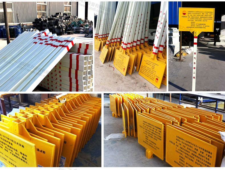 玻璃鋼標志牌是一種交通安全產品,道路交通標志牌的一種,材料采用玻璃鋼,因玻璃鋼材料無回收價值,也叫做防盜標志牌。道路交通標志牌是用文字與圖案傳遞警告禁令指示信息給司機和行人,用以管理道路交通的安全設施。它給道路使用者以確切的道路交通信息,使道路安全暢通,事關司機和行人的生命財產安全,是一種不可缺少的交通安全附屬設施。